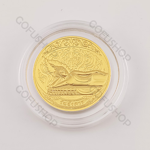 เหรียญพระประจำเกิด วันอังคาร "ปางไสยาสน์" คิวโปรนิกเกิลชุบทอง
